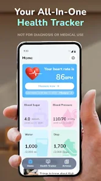 このアプリは詳細な健康レポートを生成し、ユーザーが時間の経過とともに健康の傾向を監視できるようにします。医療機器ではなく、診断や治療の目的で使用すべきではありませんが、HeartSense-HealthTrackerは高血圧や糖尿病などの状態を管理している個人や、全体的な健康を向上させたい人に適しています。外部デバイスは不要で、この無料アプリは日々の健康管理に実用的な選択肢です。